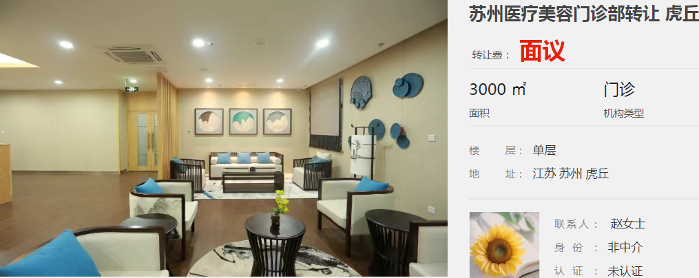 蘇州醫(yī)療美容門診部轉(zhuǎn)讓 虎丘3000平方
