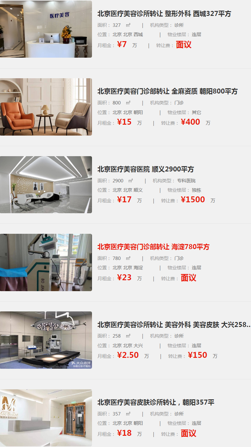 北京美容診所轉(zhuǎn)讓 整形外科 美容皮膚科 朝陽(yáng)1000平方