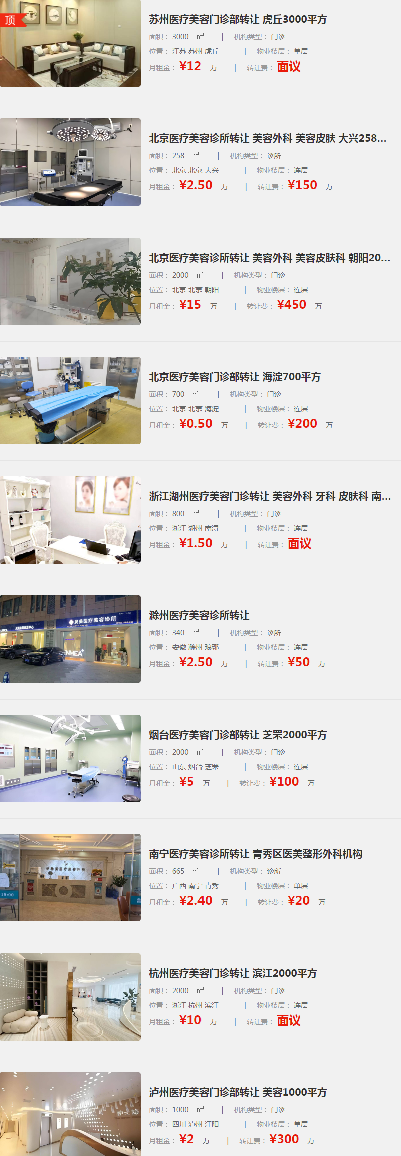 以下是指點網(wǎng)提供部分整理醫(yī)療美容診所、美容門診、美容醫(yī)院、整形醫(yī)院轉(zhuǎn)讓信息