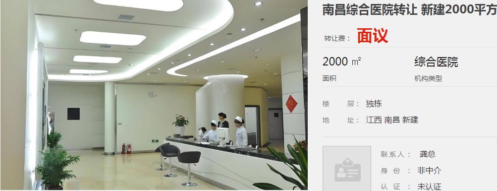 南昌綜合醫(yī)院轉(zhuǎn)讓 新建2000平方