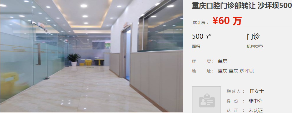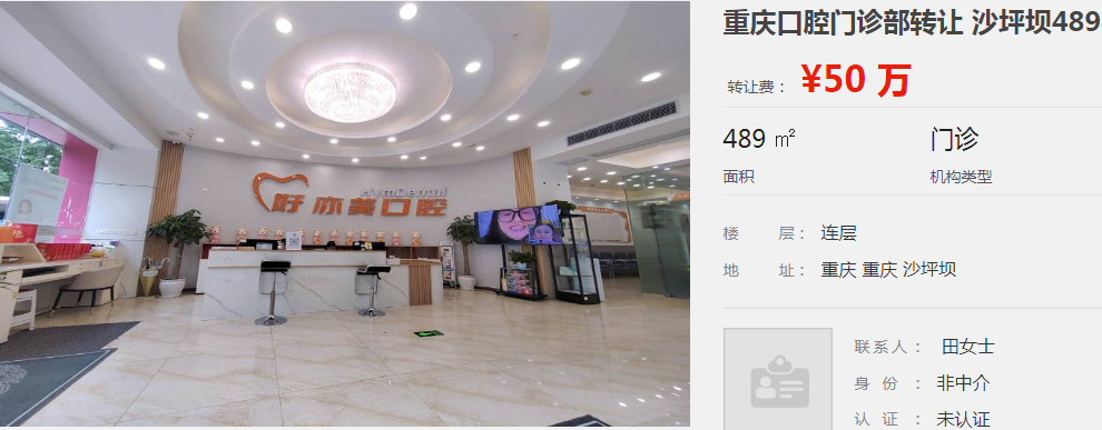 重慶口腔門診部轉(zhuǎn)讓 沙坪壩500平方