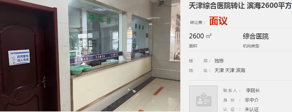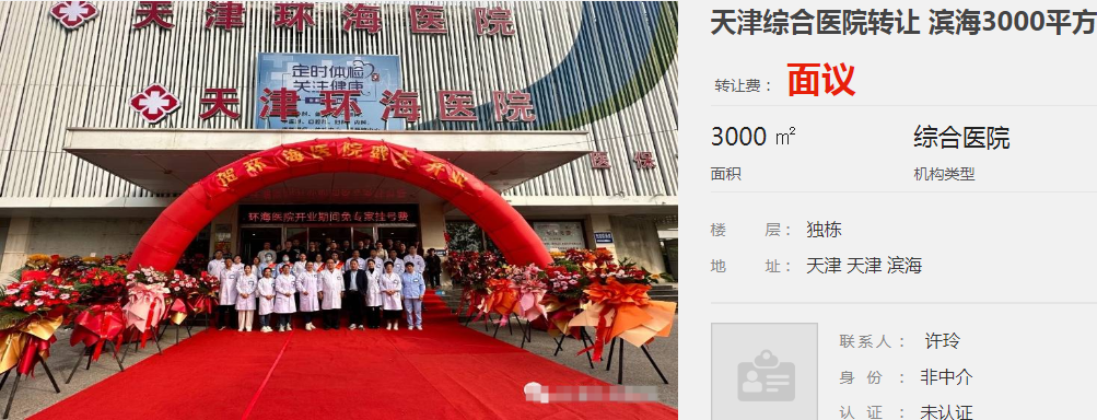 天津綜合醫(yī)院轉讓 濱海2600平方