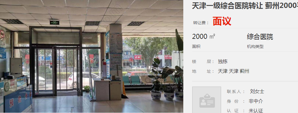 天津一級綜合醫(yī)院轉讓 薊州2000平方