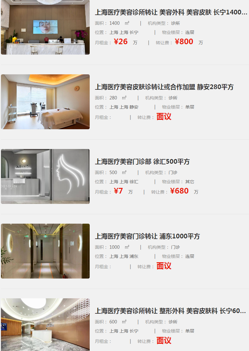上海醫(yī)療美容診所轉(zhuǎn)讓 美容外科 美容皮膚 長寧1400平方