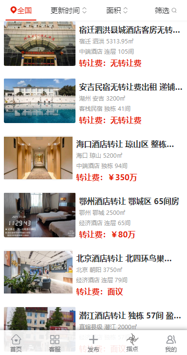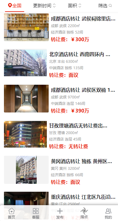 指點(diǎn)網(wǎng)作為專業(yè)的酒店轉(zhuǎn)讓平臺(tái),為買賣雙方提供了便捷的交易渠道和專業(yè)的服務(wù)支持。平臺(tái)上發(fā)布的酒店轉(zhuǎn)讓信息詳細(xì)全面,包括酒店的位置、面積、房間數(shù)量、裝修進(jìn)度、月租金以及轉(zhuǎn)讓費(fèi)等關(guān)鍵信息,為買家提供了充分的決策依據(jù)。