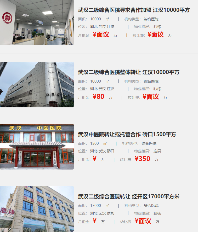 醫(yī)療資源豐富:武漢擁有眾多知名醫(yī)療機構(gòu)和專業(yè)人才,為醫(yī)院轉(zhuǎn)讓提供了堅實的基礎(chǔ)。同時,平臺上豐富的醫(yī)院轉(zhuǎn)讓信息也為投資者提供了更多選擇。