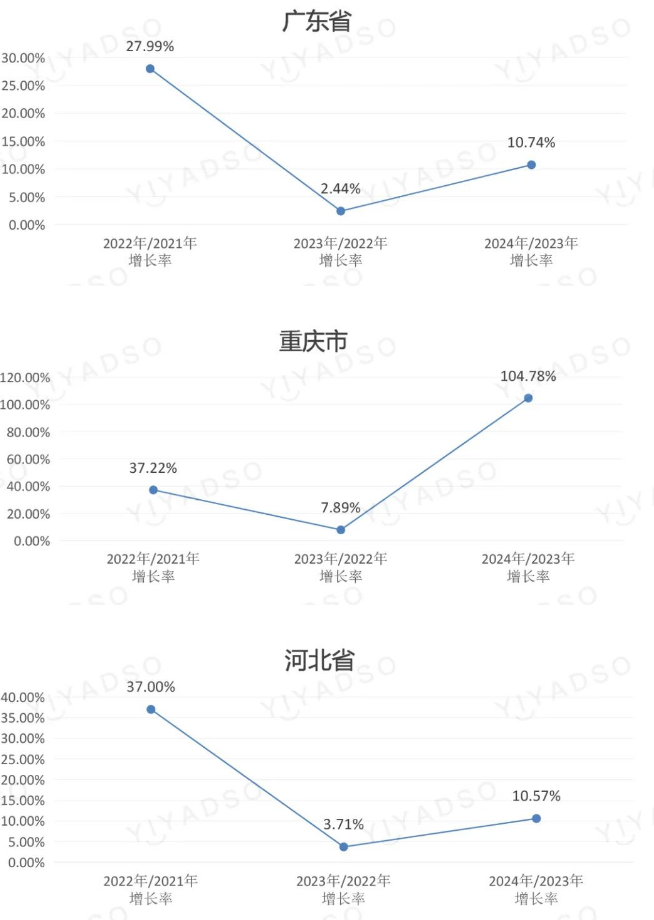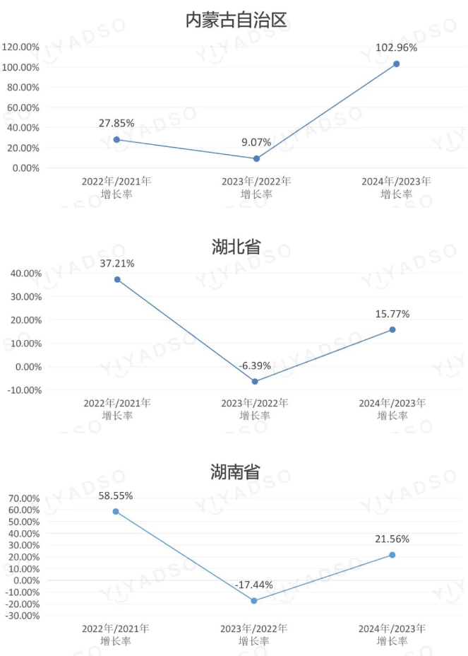 4,截至到2024年9月底增長超過10%的省份直轄市自治區(qū)包括:重慶市104.78%,內(nèi)蒙古自治區(qū)102.96%,貴州省26.1%,甘肅省23.12%,湖南省21.56%,安徽省18.97%,江西省16.04%,湖北省15.77%,海南省14.92%,廣東省10.74%,河北省10.57%,河南省10.54%。