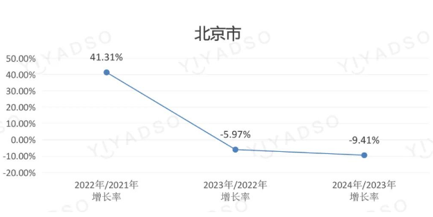北京已經(jīng)連續(xù)兩年呈現(xiàn)負增長狀態(tài),從2022年最高點3301家降至2024年截至到9月底的2812家。