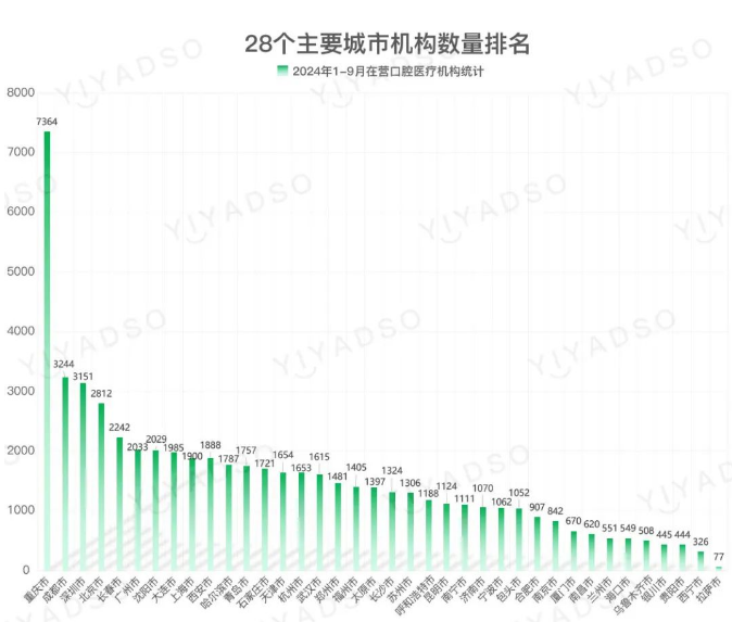 總結(jié):通過以上數(shù)據(jù)分析,我們可以看到進入到2024年全國口腔醫(yī)療機構(gòu)的數(shù)量變化在各個省份直轄市自治區(qū)或是主要城市都呈現(xiàn)出分化狀態(tài)。