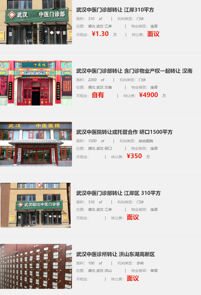 武漢中醫(yī)門診部轉讓 含門診物業(yè)產權一起轉讓 漢南