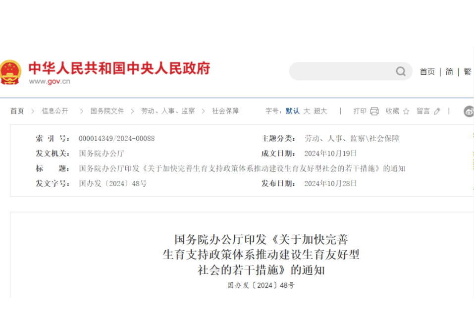 10月28日,國務(wù)院辦公廳印發(fā)《關(guān)于加快完善生育支持政策體系推動建設(shè)生育友好型社會的若干措施》(以下簡稱《若干措施》)。