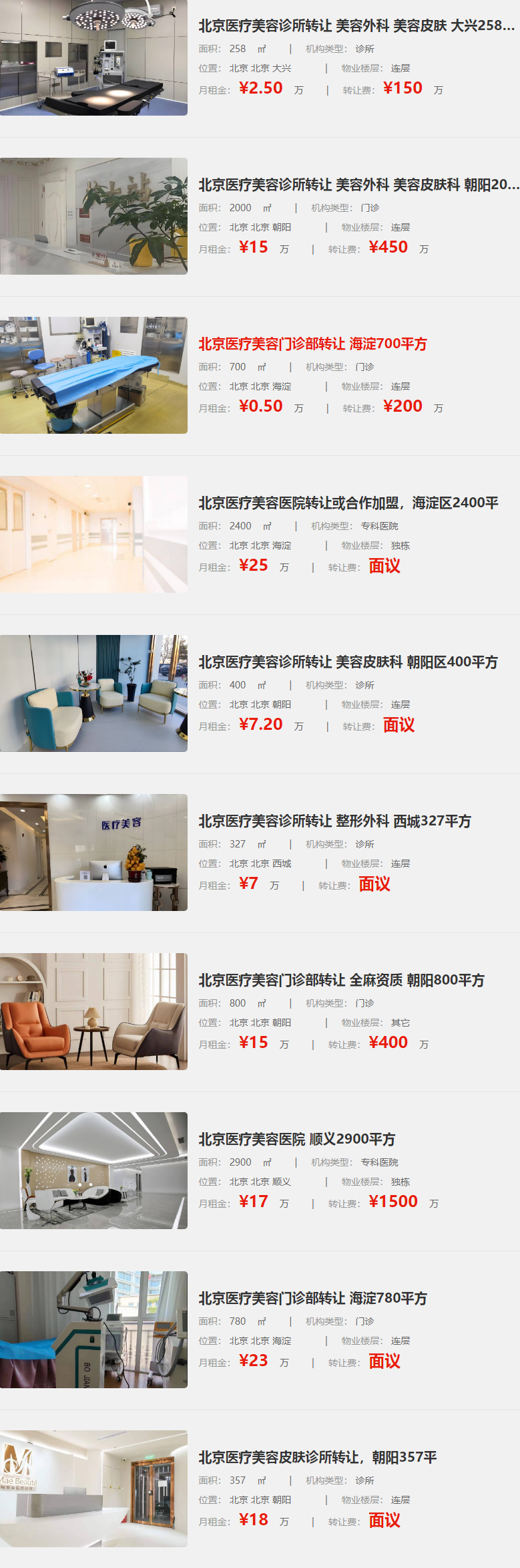 以下是指點(diǎn)網(wǎng)北京部分美容醫(yī)院轉(zhuǎn)讓部分信息