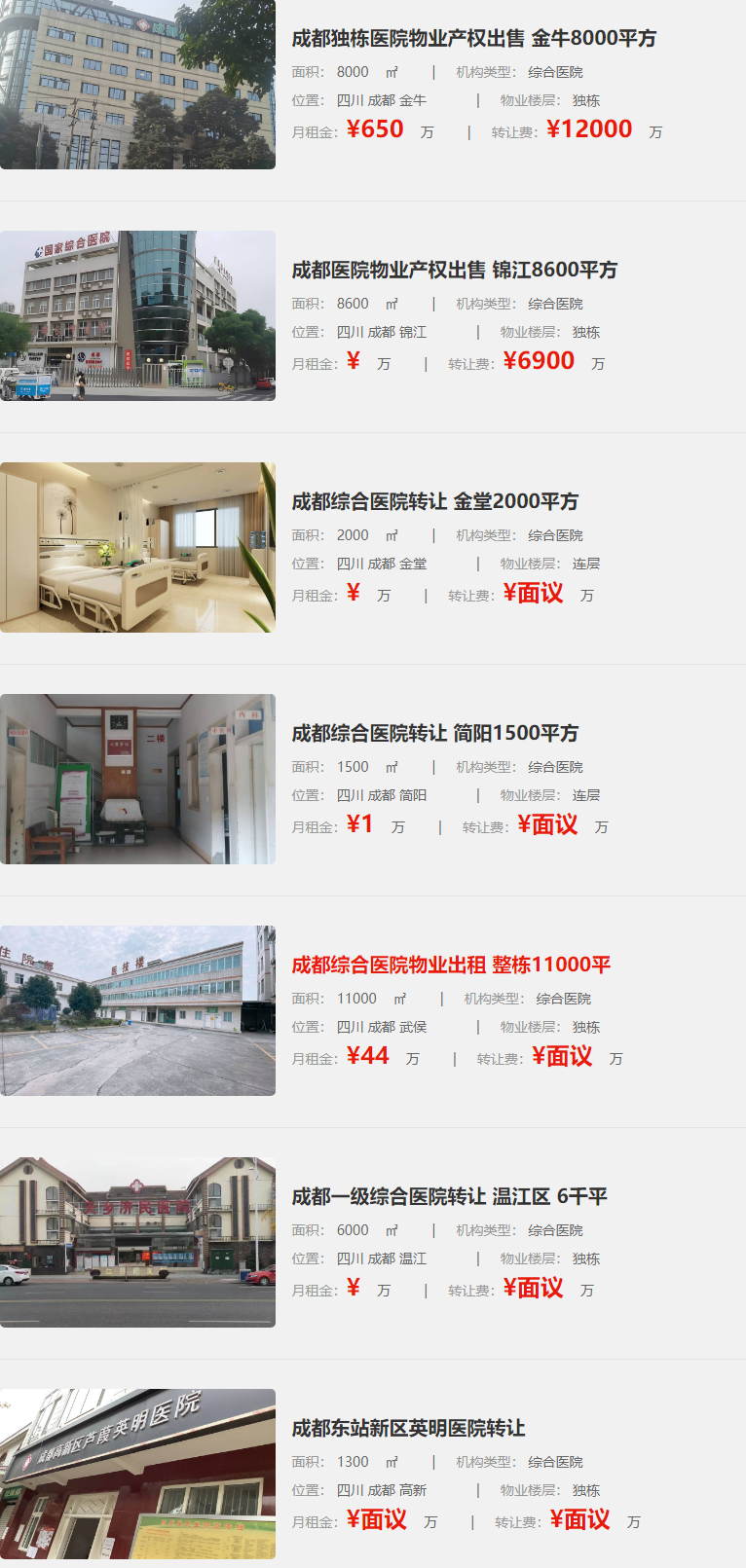 以下是指點(diǎn)網(wǎng)整理部分成都醫(yī)院轉(zhuǎn)讓信息更了解小程序搜指點(diǎn)網(wǎng)