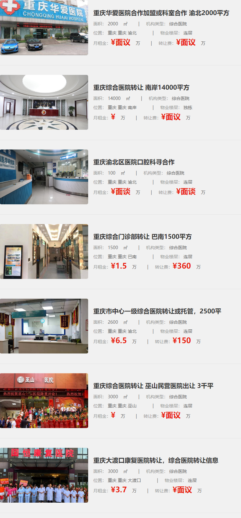 重慶??漆t(yī)院控股股權(quán)轉(zhuǎn)讓或整體轉(zhuǎn)讓 璧山2000平方