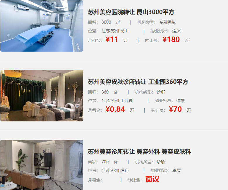 蘇州美容醫(yī)院轉(zhuǎn)讓 昆山3000平方