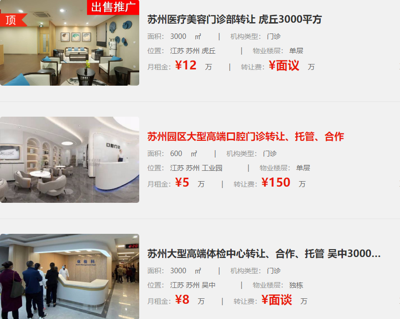 蘇州醫(yī)療美容門診部轉(zhuǎn)讓 虎丘3000平方