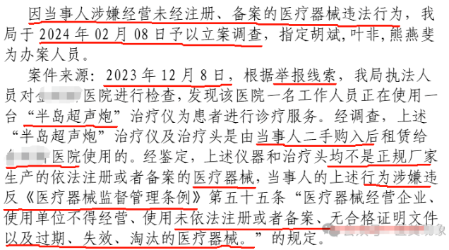 違法處罰依據(jù):涉嫌經(jīng)營(yíng)未經(jīng)注冊(cè)、備案的醫(yī)療器械違法行為。
