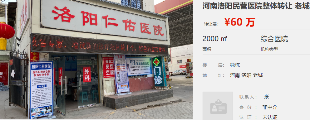河南洛陽(yáng)民營(yíng)醫(yī)院整體轉(zhuǎn)讓 老城2000平方