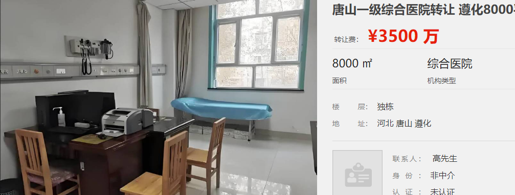唐山一級(jí)綜合醫(yī)院轉(zhuǎn)讓 遵化8000平方