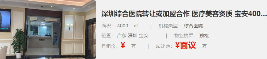 深圳綜合醫(yī)院轉(zhuǎn)讓或加盟合作 醫(yī)療美容資質(zhì) 寶安4000平方