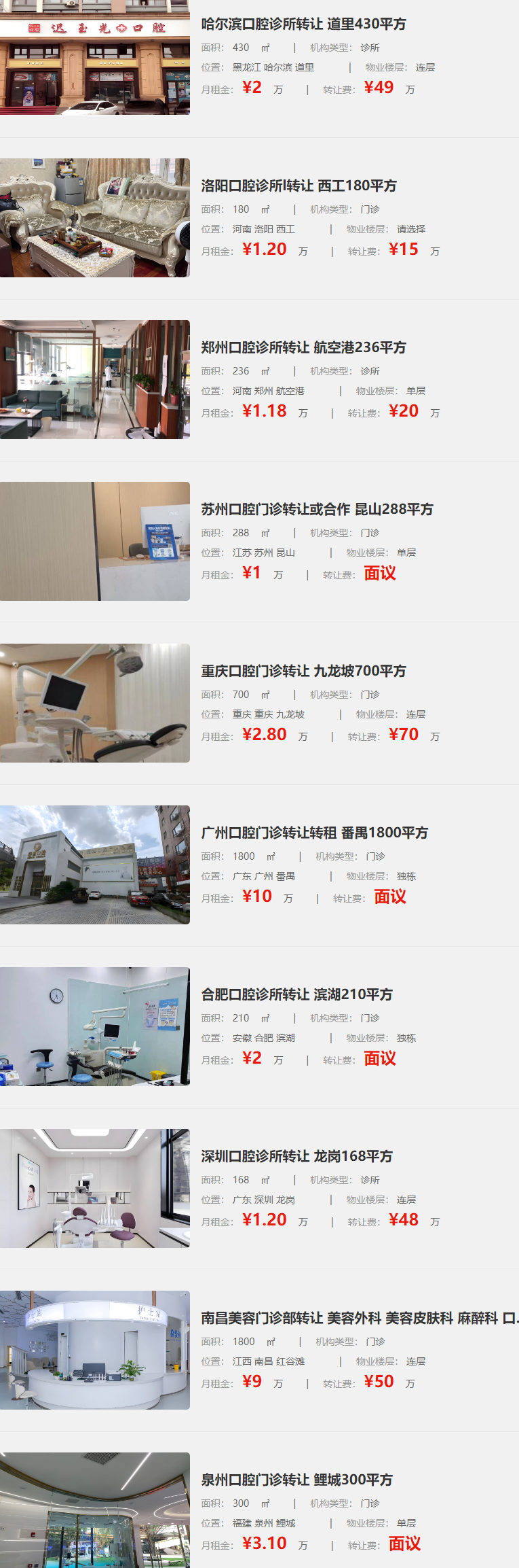 指點(diǎn)網(wǎng)口腔醫(yī)療機(jī)構(gòu)轉(zhuǎn)讓平臺(tái)憑借其強(qiáng)大的資源整合能力,已在全國(guó)范圍內(nèi)建立起完善的口腔醫(yī)療機(jī)構(gòu)轉(zhuǎn)讓信息網(wǎng)絡(luò)。無(wú)論是青島市北800平方米的口腔門診部,還是廣東揭陽(yáng)普寧50平方米的口腔診所,無(wú)論是江蘇無(wú)錫梁溪300平方米的綜合診所,還是廣東惠州惠城180平方米的口腔門診部,甚至是北京市昌平區(qū)沙河180平方米的綜合診所,指點(diǎn)網(wǎng)都能提供詳盡、準(zhǔn)確的轉(zhuǎn)讓信息。平臺(tái)通過(guò)智能化的匹配系統(tǒng),幫助投資者快速鎖定目標(biāo),實(shí)現(xiàn)精準(zhǔn)對(duì)接,極大地提高了轉(zhuǎn)讓效率。