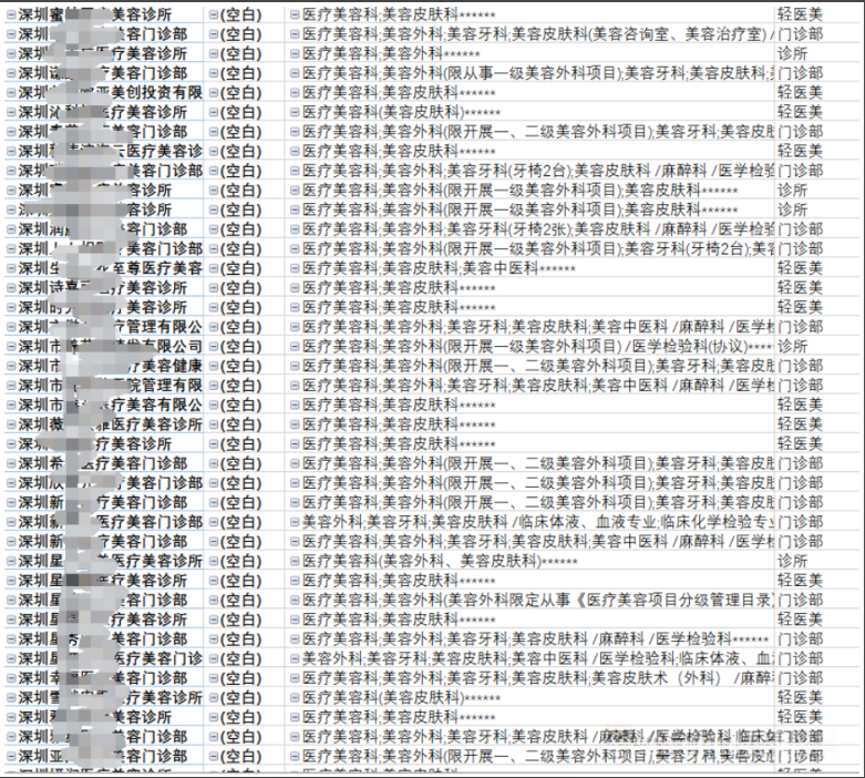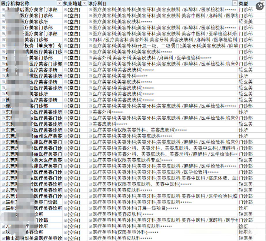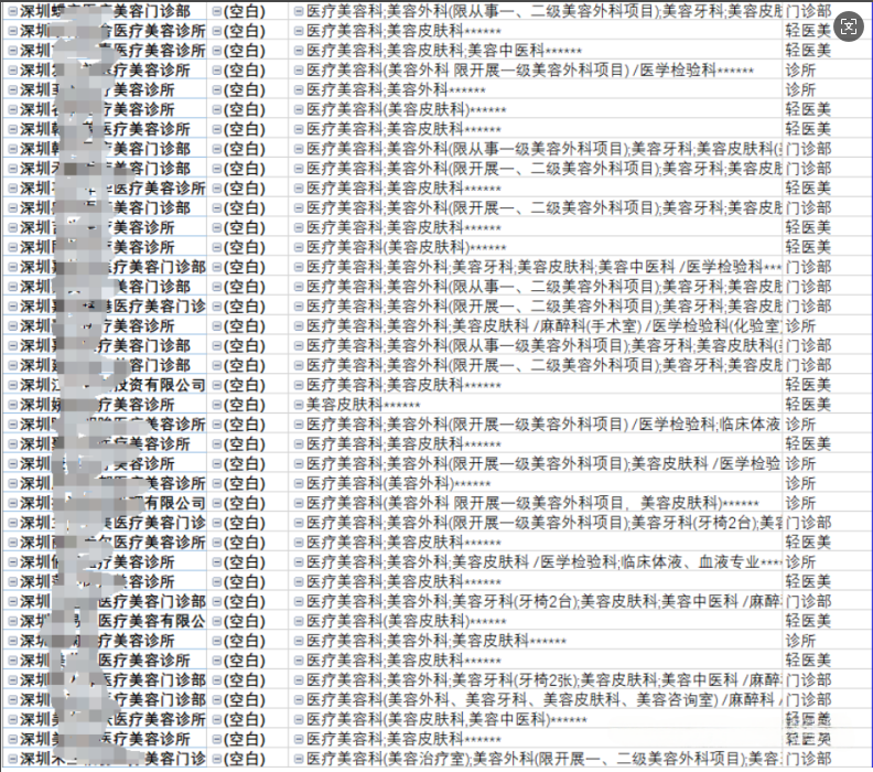 在 2024 年 12 月對廣東省大灣區(qū)醫(yī)美機(jī)構(gòu)大數(shù)據(jù)進(jìn)行梳理時(shí),一個(gè)不容忽視的現(xiàn)象浮現(xiàn)出來。相較于今年 2 月份的數(shù)據(jù),短短不到 10 個(gè)月的時(shí)間里,約有 340 家醫(yī)美機(jī)構(gòu)出現(xiàn)了各類異常情況,占比達(dá) 15% 左右。這些異常涵蓋了注銷、資質(zhì)變更、地址變更、法人變更、增減面積以及經(jīng)營業(yè)務(wù)變更等多種形式。