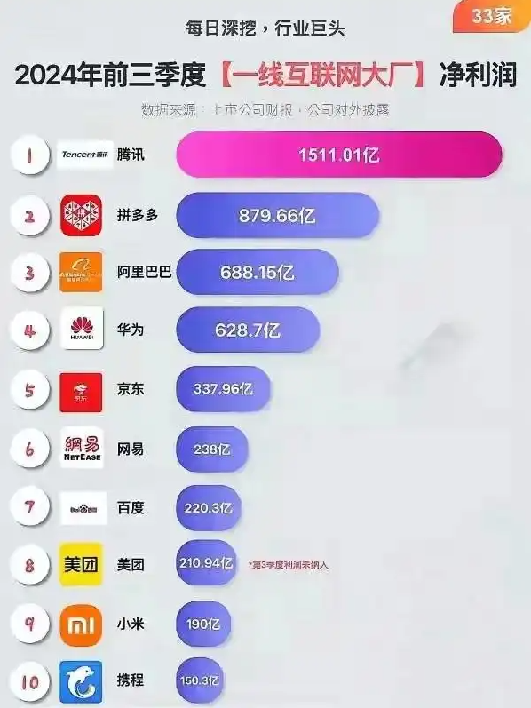 相比之下,騰訊雖然目前還是老大,2024 年前三季度凈利潤 1500 多億,但拼多多的追趕速度讓人驚嘆。有人說,如果拼多多 2025 年凈利潤再次翻倍就能超越騰訊,不過也有人覺得今年實現(xiàn) 1200 億后,明年很難再翻倍,但同比暴漲 50% 還是很有可能的,然后 2026 年再暴漲 50%,超越騰訊也就這兩三年的事兒。